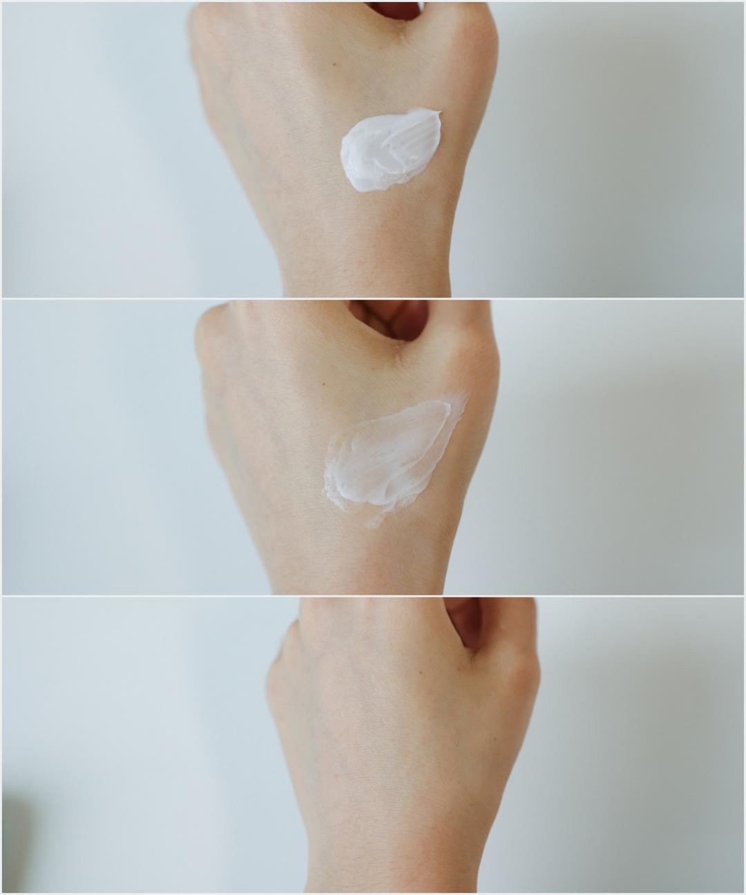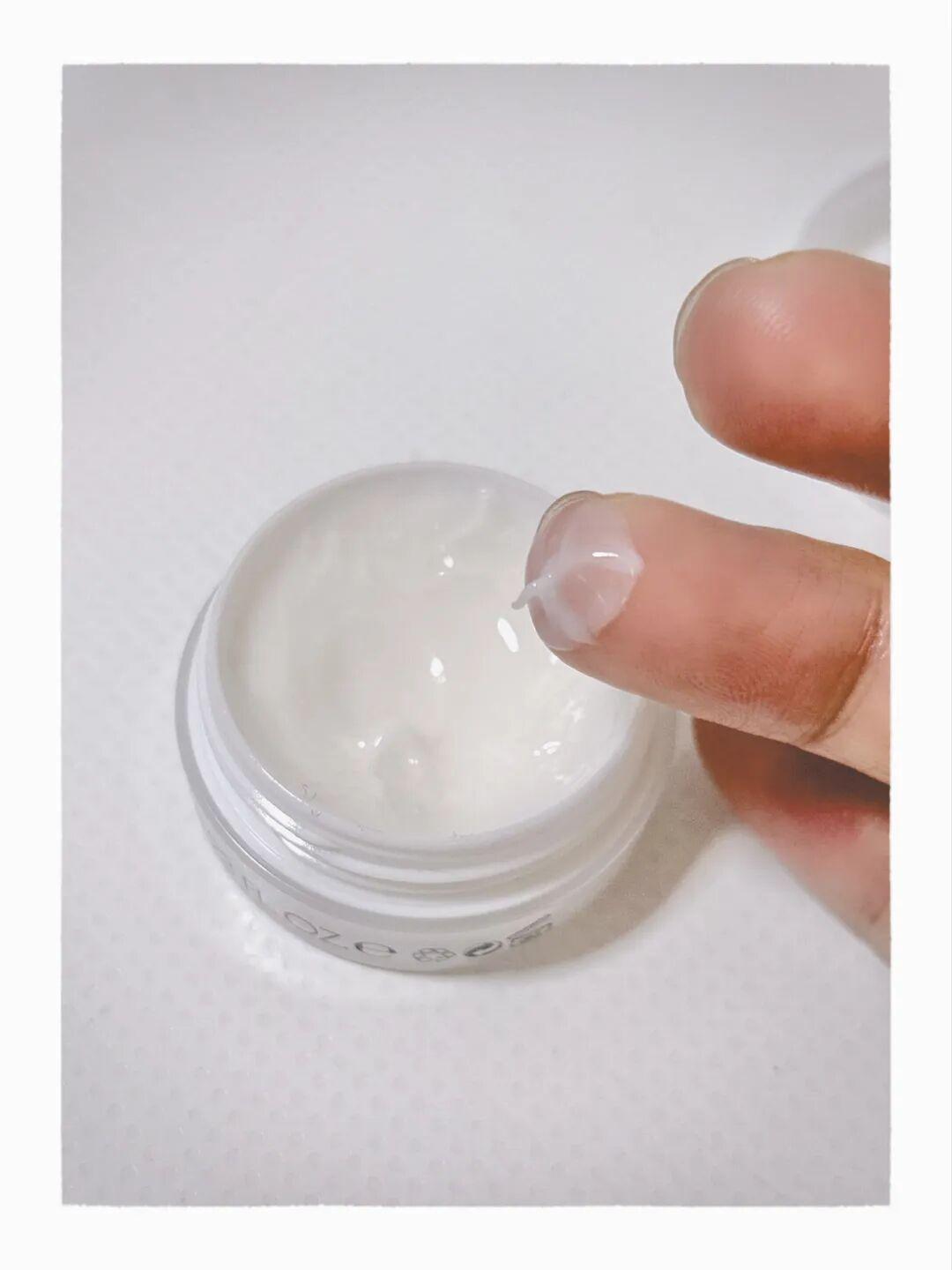 質地有點像奶油霜,看着厚但上臉特別輕盈,按摩幾圈就吸收得差不多了,上臉潤而不膩,很好吸收,是油皮混油皮都會覺得舒服的膚感。▼