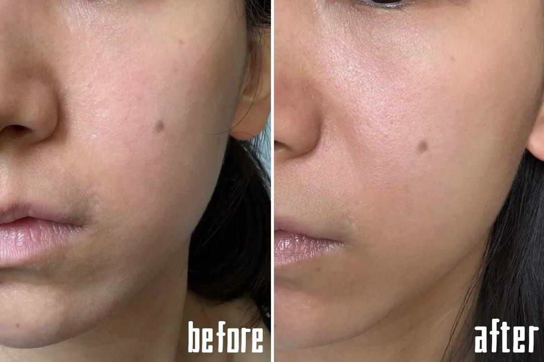 小佳最近就天天在用,她的皮膚屬於一到換季就“造反”的類型,前幾天“訴苦”說:T區油得不行,但兩頰變成了大糙皮。用了幾天,皮膚的質感來了個大轉變,肉眼可見的變細膩了,手感變得像豆腐一樣,上妝也不卡粉了。