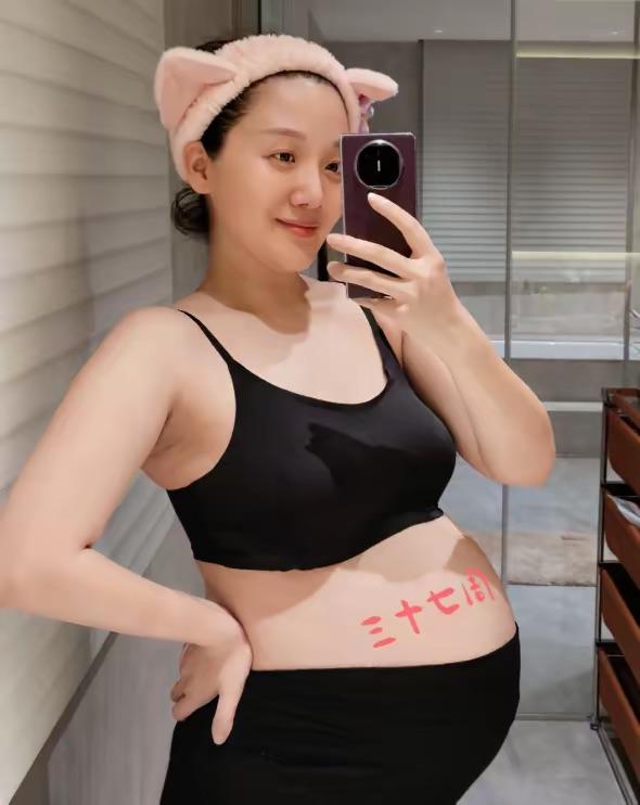 在孕期,莫丹也曾大方的曬出孕肚。她的身材沒有那麼苗條,似乎四肢都變得更加粗壯了。穿着黑色小背心、高腰的孕婦褲,儼然是肚大如籮的感覺。對鏡自拍、滿眼都是期待。