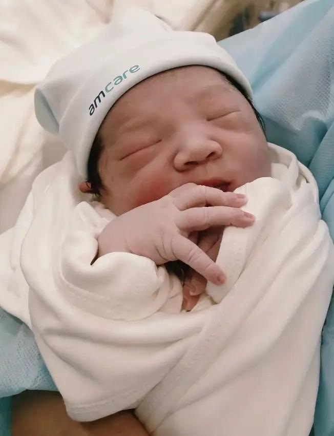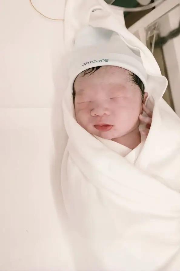 小寶皮膚白白的,還閉着眼睛,她的嘴脣有點厚厚的、甚至鼻子也挺大,這個五官輪廓分明更像爸爸喬杉。驚喜的是,纔剛生出來的小寶,頭髮烏黑烏黑的。