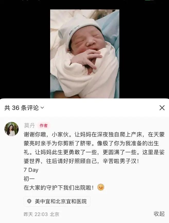 發文的時候,莫丹已經帶着小寶出院了,想來生娃應該是前幾天的事情了。終於把這份喜悅分享出來,說明莫丹身體恢復的不錯。