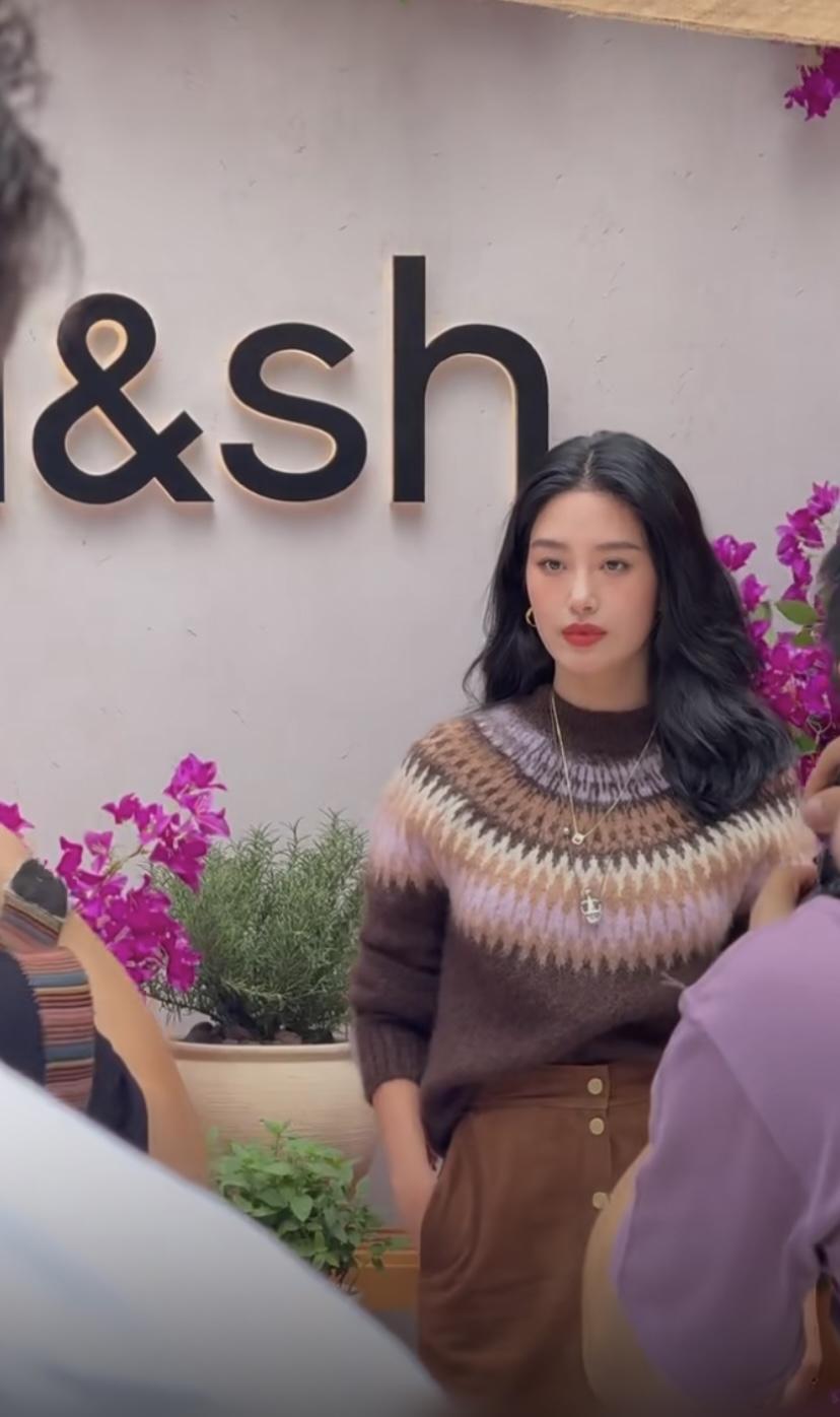 和賭王千金何超蓮同框,楊採鈺的美貌一點都不遜色分毫。她穿着費爾島花紋的毛衣、配了一條棕色的直筒半身裙,有一種很秋天的感覺。