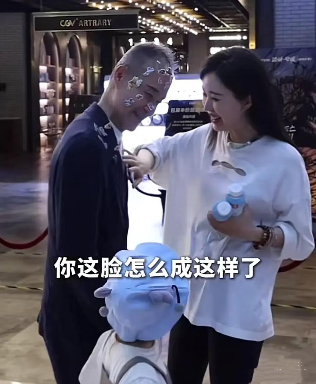可能他想顯得年輕一點,能配得上老婆田樸珺的美貌吧。所以選擇了少年感很強的格子襯衫,讓人覺得有點彆扭。