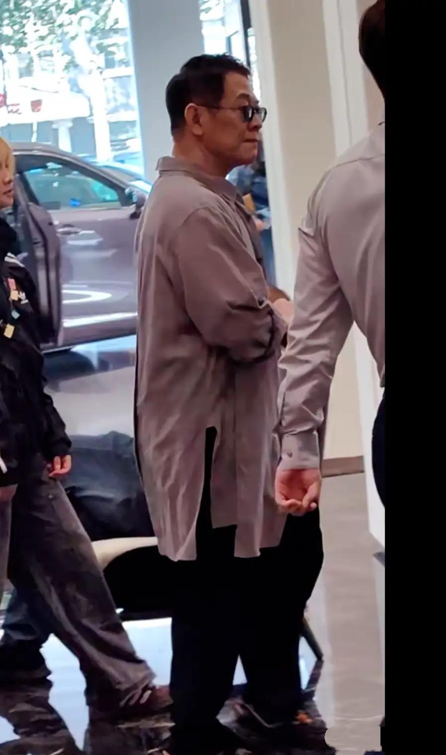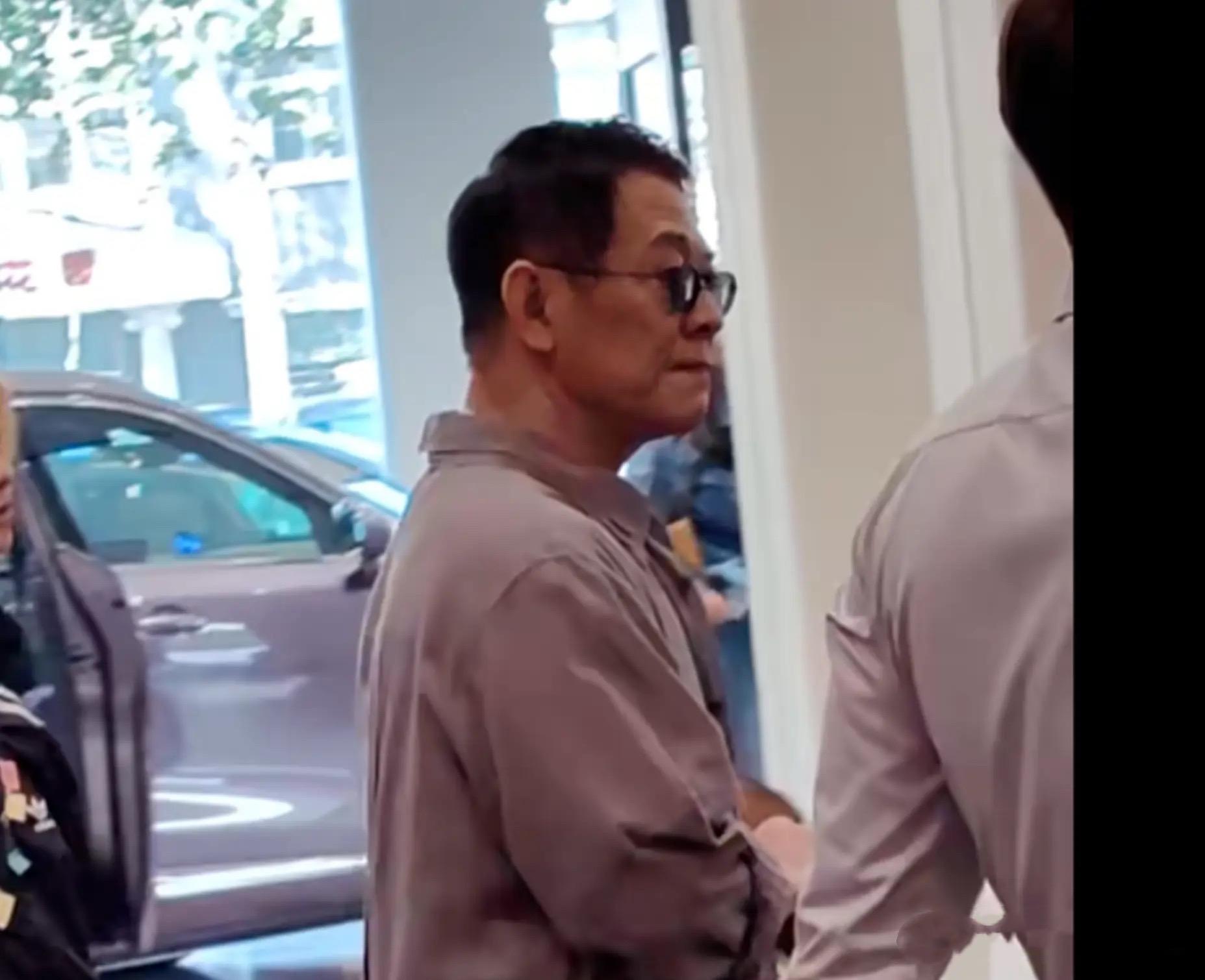 李連杰現身北京4S店,穿粗布襯衫很低調,沒清場憋嘴耷拉臉不開心