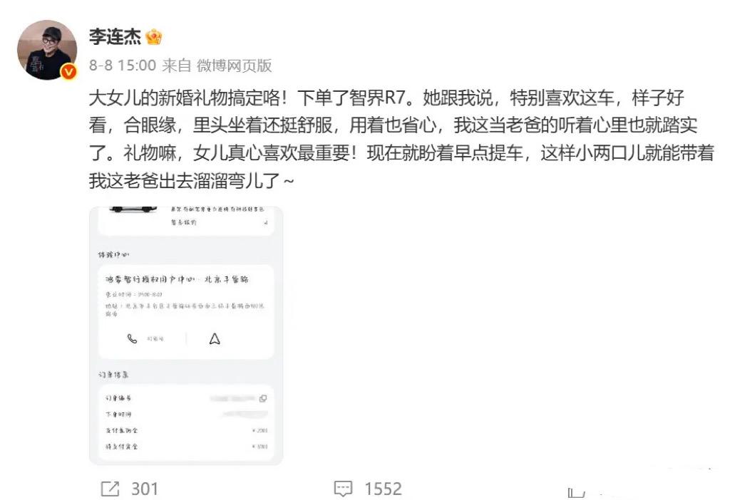之前在大女兒生日的時合,他下單了智界R7,價值30萬的國產電車。本來是想要分享喜悅,卻被網友們一頓冷嘲熱諷。
