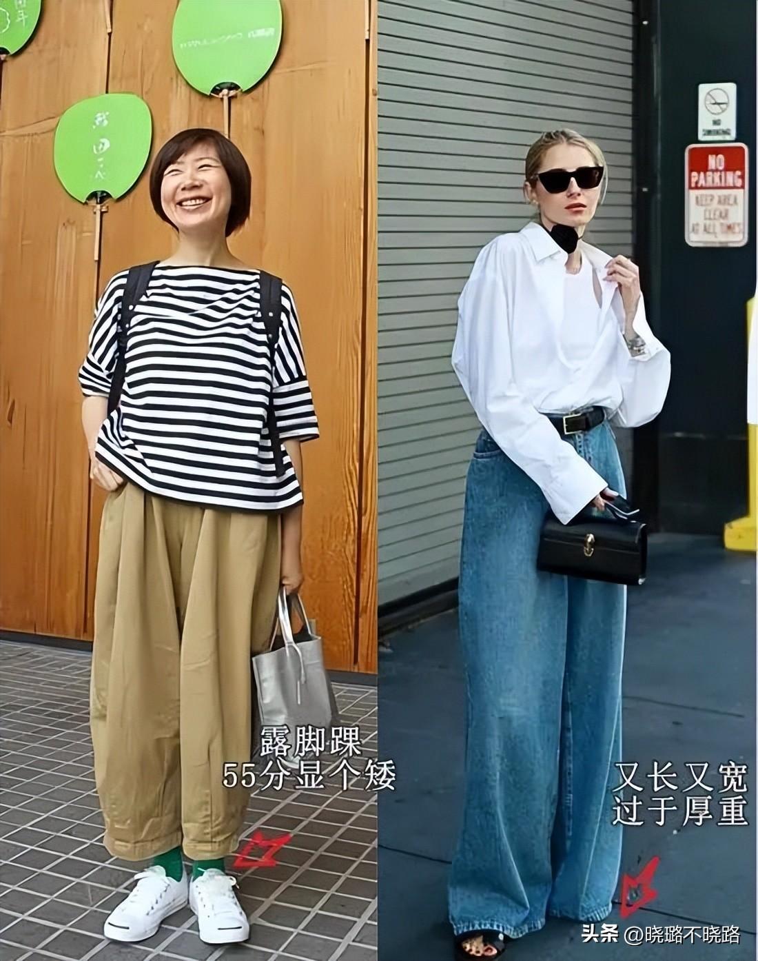 經常在時尚圈才知道,竟然有這麼多人在吐槽闊腿褲!一是因爲它的版型太太太寬鬆了,一不小心就模糊了腰線的位置,讓上下身的比例變成五五分,尤其對於身高很矮的人來說,寬鬆的褲腿還有可能會吞掉你的腿部線條,視覺是那個直接顯矮十公分不止!雖然它的褲型確實很藏肉,但是稍微選錯了,肥大的褲管不僅可能會橫向拉寬你的身形,微胖身材的女人穿起來巨顯臃腫肥胖,根本沒有任何的顯瘦效果。