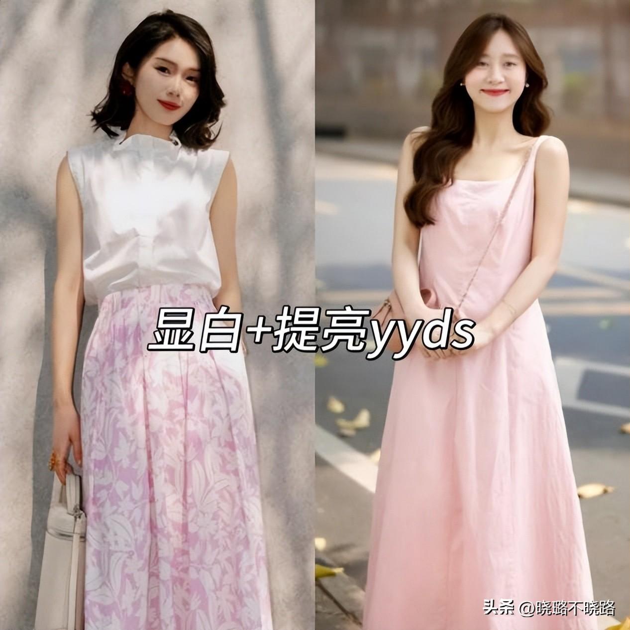 想要視覺上顯得更加輕盈,擺脫整體的沉悶感,那麼色彩的選擇至關重要。儘可能少碰暗沉的深色系列,改成這種清淺的淺色更加合適,不管是奶白色杏色還是粉色天藍色,只要他們的色調飽和度比較低,亮度也比較低,那麼就可以輕鬆地降低全身的重量感,讓你的穿搭更加的輕盈精緻。
