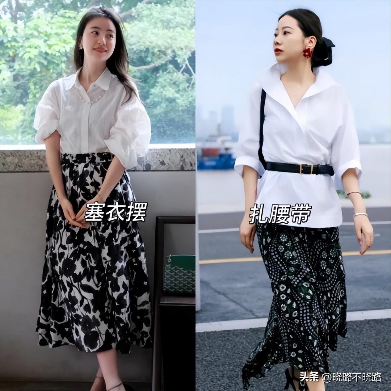 如果你本來的身材比例不是很好,那麼一不小心就會陷入矮胖的尷尬當中,建議大家可以疊加一條腰帶,通過這樣的配飾來幫你劃分比例,輕巧的穿出大長腿。但如果想要造型更加簡單一些,也可以直接將T恤或者襯衫的下襬扎進裙襬的眼神裏,自然的縮短上半身的長度,視覺上就會顯得更加輕盈一些。