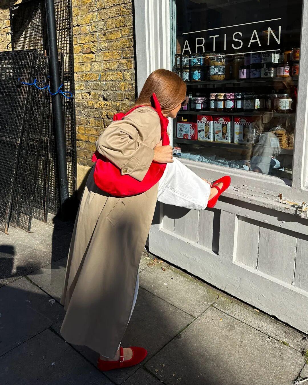小紅鞋和棕色/褐色衣服也是絕佳搭子,一明一暗有視覺衝擊感。