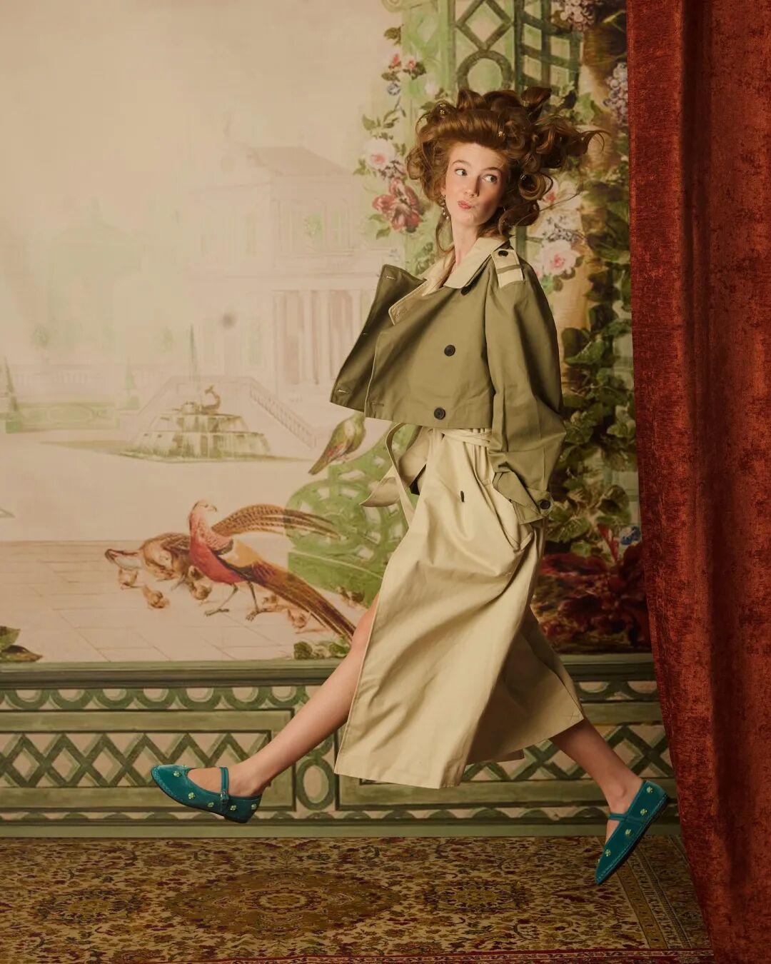 絲絨瑪麗珍鞋自帶古典浪漫氣息,又有文藝俏皮的基因,想要風格最大化,搭配上也可以去強化這個風格。▼