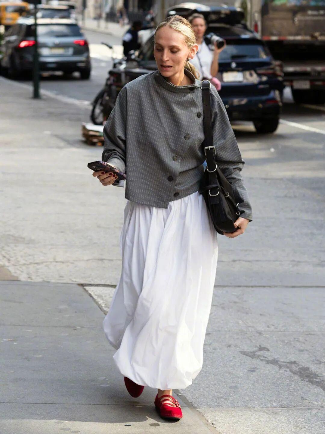 比如,白裙子/褲子+小紅鞋,保持清爽的同時又足夠吸睛。最近的時裝週街拍▼