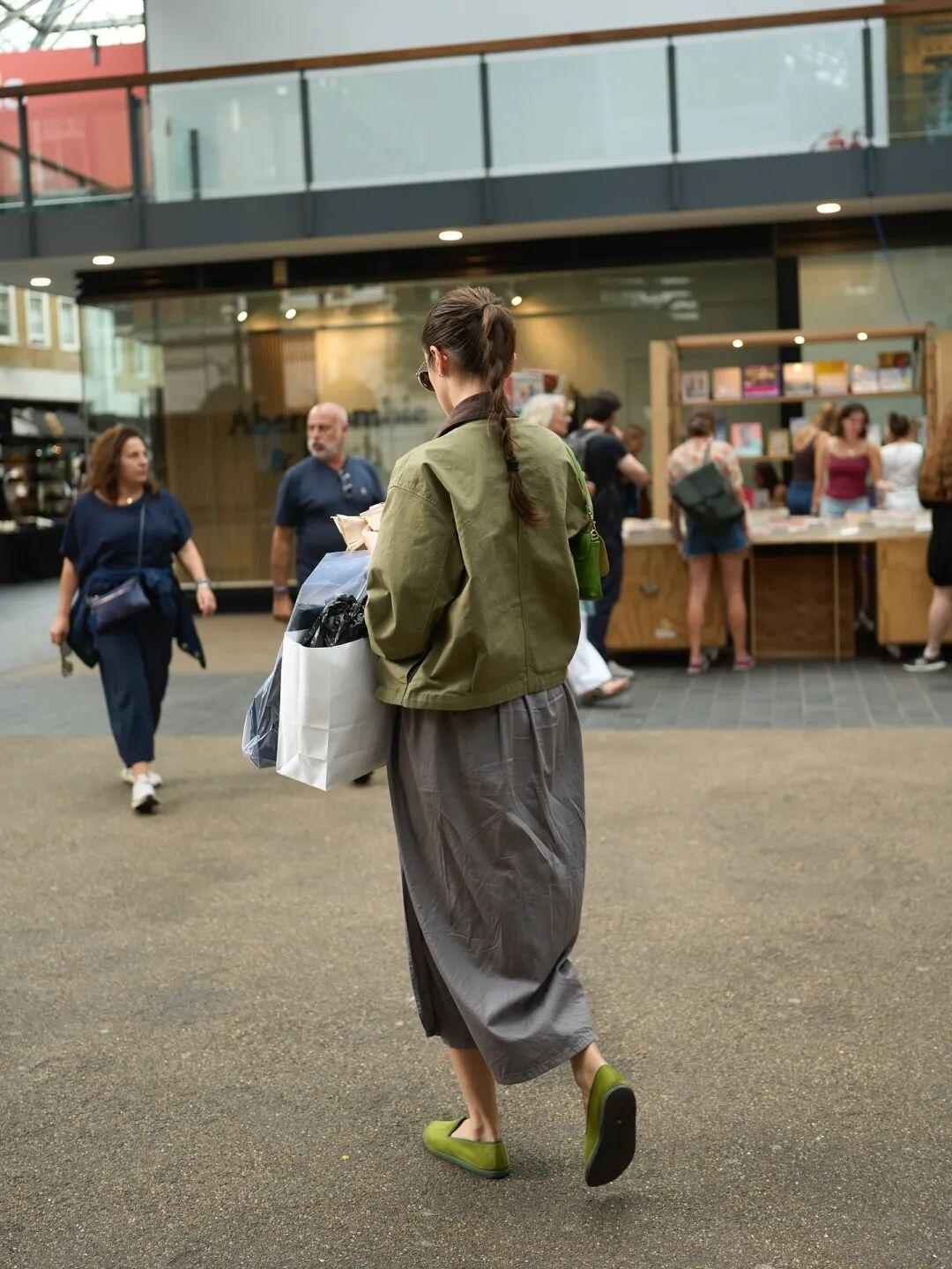 Meow也有一雙絲絨小黃鞋,之前搭配過自有品牌的白褲子。她這雙來自Sam Edelman,腳感很好,有段時間天天穿,小缺點是光腳穿出汗後會有點悶,所以她更喜歡踩腳穿,參考價1000+元,他家經常打折,感興趣的可以蹲一蹲。▼