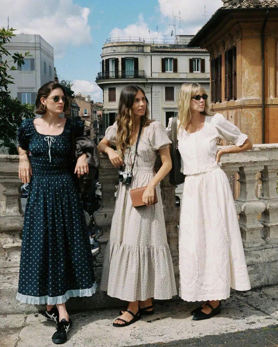 除了印花碎花,還可以選擇有娃娃領、荷葉邊、泡泡袖等復古元素的單品做搭配。▼