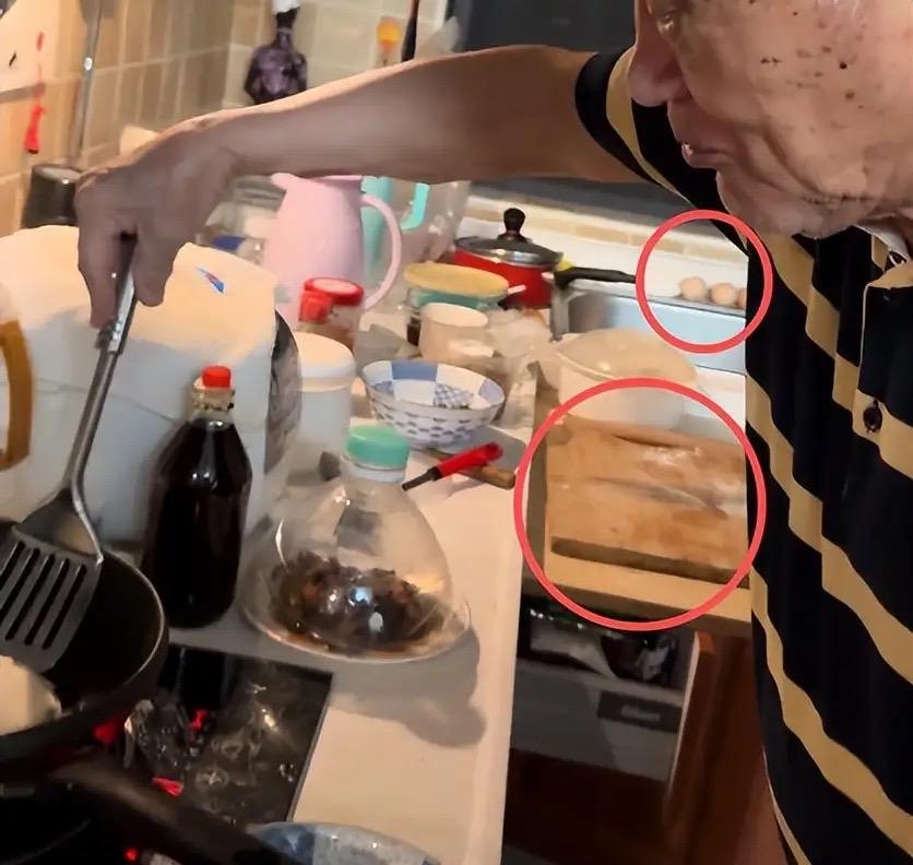 私下裏,牛犇在養老院都是自己煮飯的。他92歲了,手腳都不是那麼靈活了,感覺他拿鏟子的手都顫顫巍巍的。