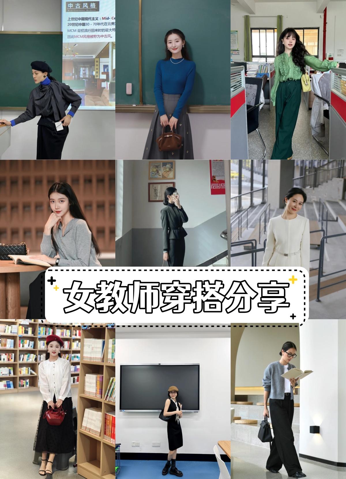 女教師們的穿搭大致圍繞着“溫柔簡約、幹練氣質”風格展開,有些網上那種很性感很誇張的擺拍,就不分享了,純粹是博眼球,不適用。