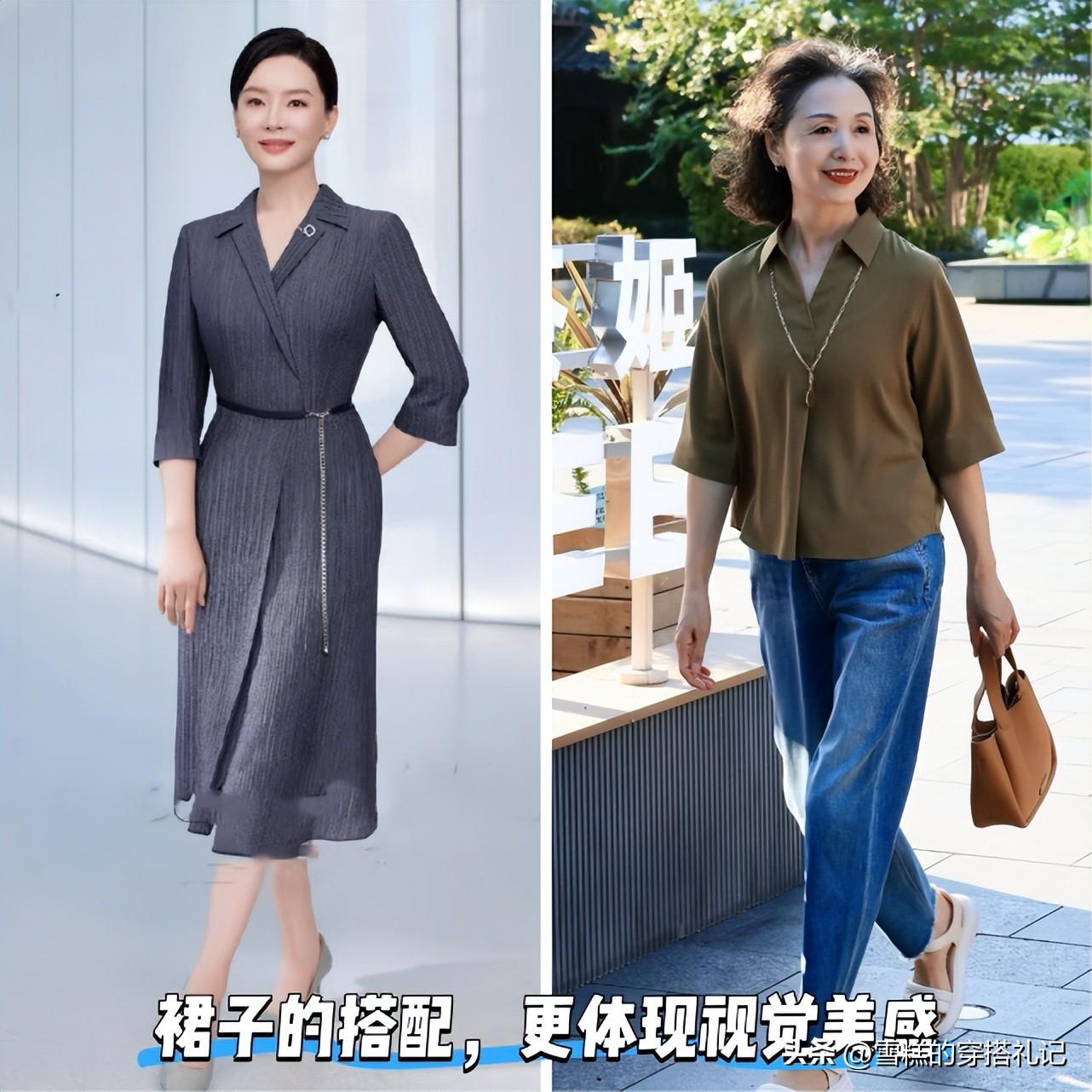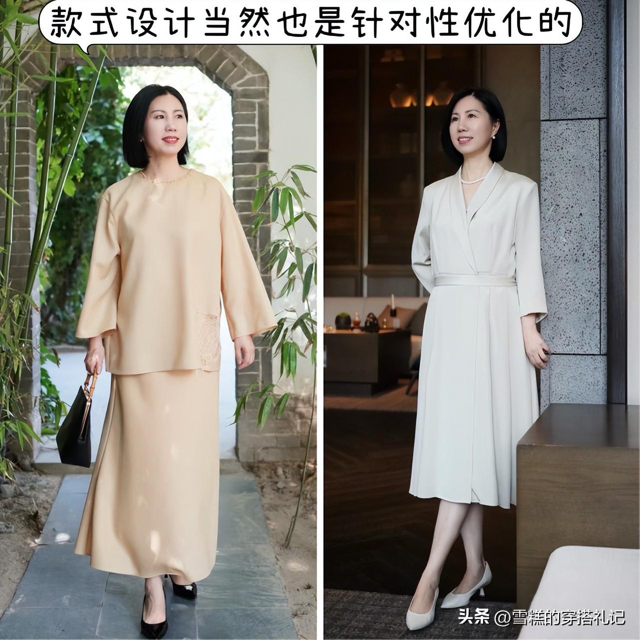以上這3組對比圖的呈現效果就非常的明朗直觀了呢,所以對於屏幕前各位上了年紀的女性,大家還是要將裙裝這款單品作爲絕對的優選進行運用哦。