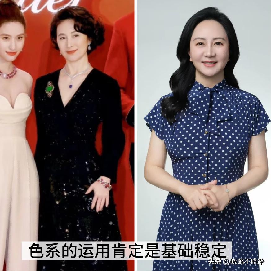 在絕大多數的時候,像孟晚舟和何超瓊他們兩位搭配的單品,不管款式如何,所選擇的色系幾乎都是基礎的搭配,因爲非常的極具穩定性,而且對於肌膚以及輪廓的走向都非常的明朗和具有一定的修飾效果。當然了,在一些私下裏的場合也會搭配一些彩色系,但一定是對於我們的肌膚狀態非常極具穩定,而且也沒有那麼突兀和顯老的類型。