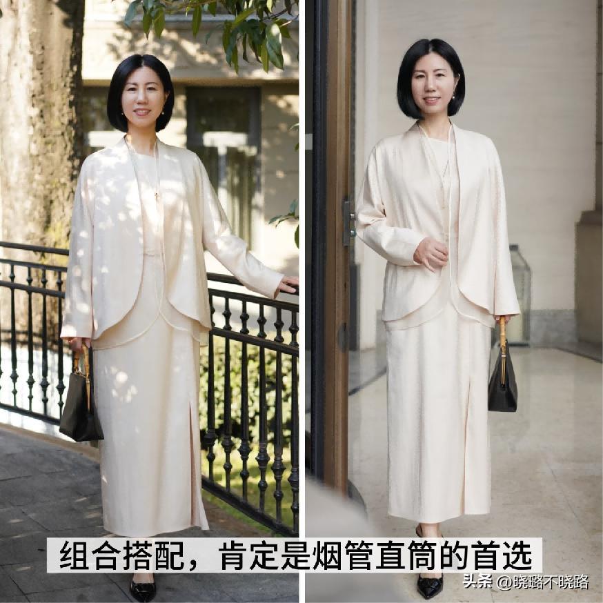 到了四五十歲的這個年齡階段,真的非常推薦大家可以和以上這兩位女性一樣,多多搭配一些套裝的系列,並且其版型的狀態首選的話當然是要考慮煙管直筒的設計,對於身材上的不足可以將其優化和修飾,最主要的是襯托出來的利落感以及流暢的效果是非常明顯的。
