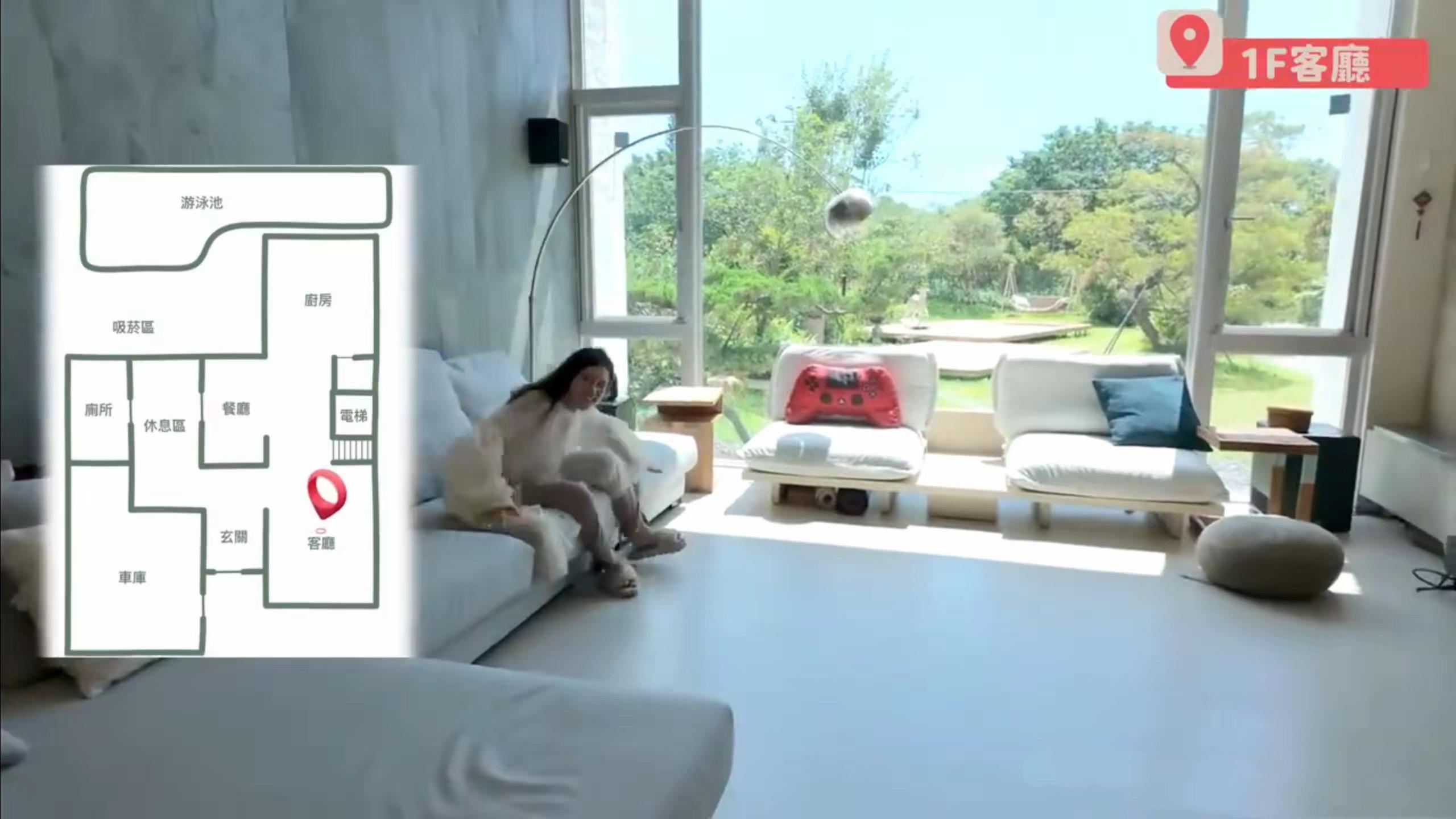 參觀了游泳池,再看謝依霖家裏的大客廳。客廳是暖色系的格調,非常溫馨、給人一種很舒適的感覺。
