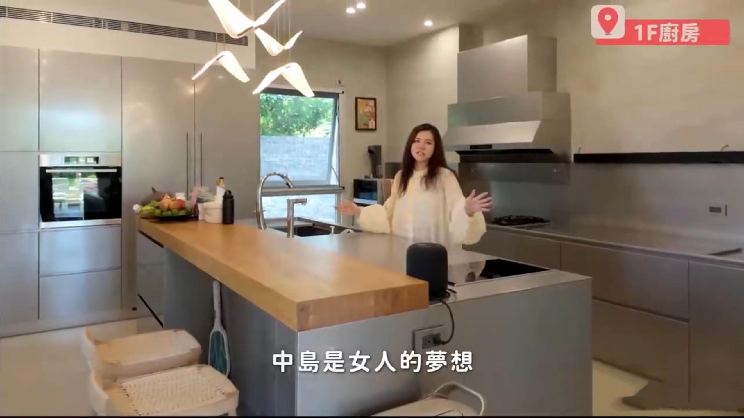 謝依霖的家,最大的特點就是大。不僅客廳面積超過200平,廚房位置也特別寬敞,有長長的島臺、還有操作區,以及整面牆的櫥櫃、鑲嵌式的蒸烤一體機。