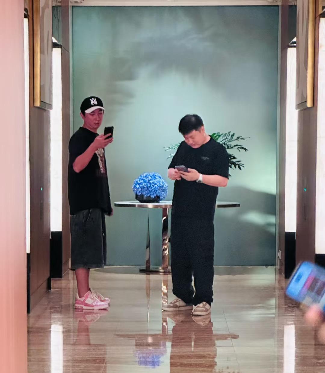 王思聰和同伴在酒店走廊裏站了一小會,兩個人都在玩手機、彼此之間也沒什麼交流。雖然王健林被限高了,但王思聰的日子依然很瀟灑。