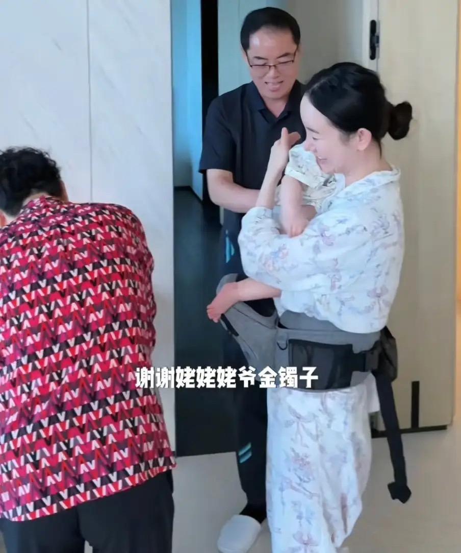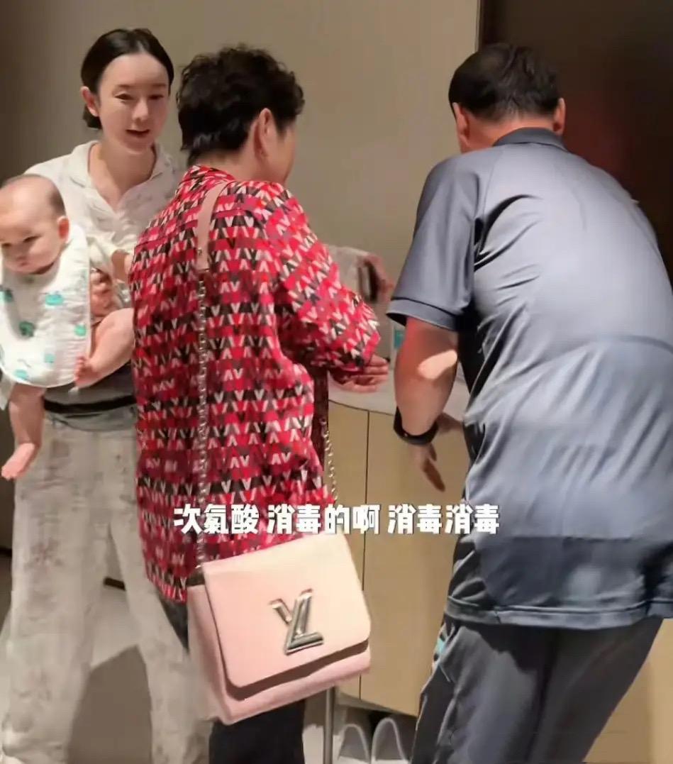 張檬爸媽杭州看外孫,消毒洗手纔敢抱孩子,給Dyla買的金鐲子好細