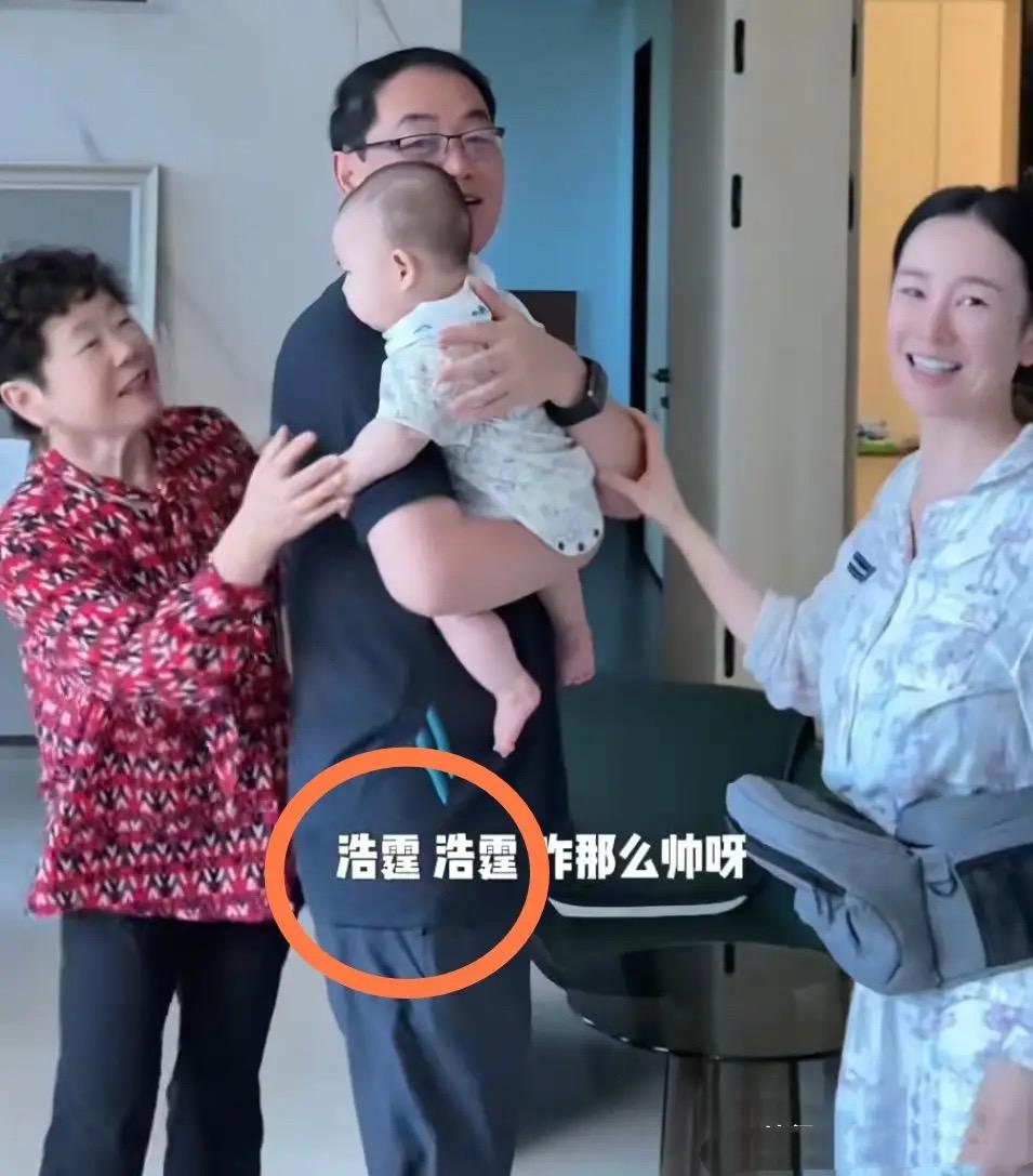 外公抱娃的動作也是越來越熟練的,一家人在一起的時光真快樂。外婆還一個勁的喊着浩霆、浩霆,咋那麼帥呀,果然是自己家的孩子越看越喜歡。