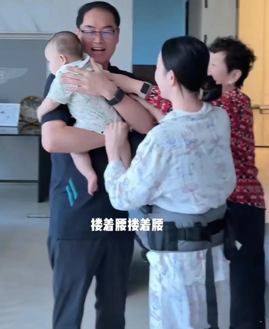 張檬媽媽抱完了、爸爸也要搶着抱。爸爸抱娃的動作有些生疏、畢竟很多年都沒有抱過小寶寶了。媽媽和張檬在一旁小心翼翼的提醒着,摟着腰、摟着腰,生怕小寶寶有點什麼閃失。