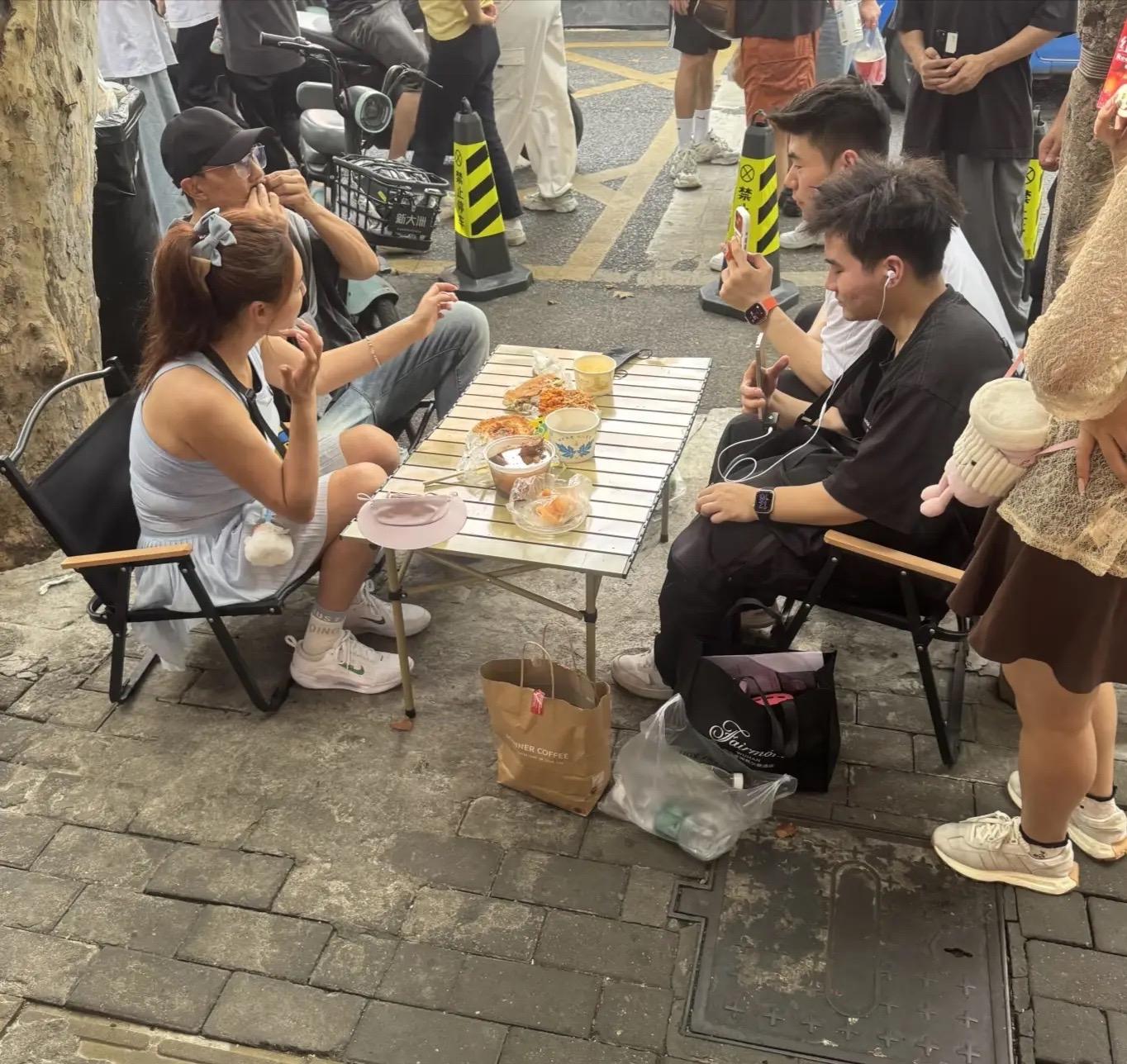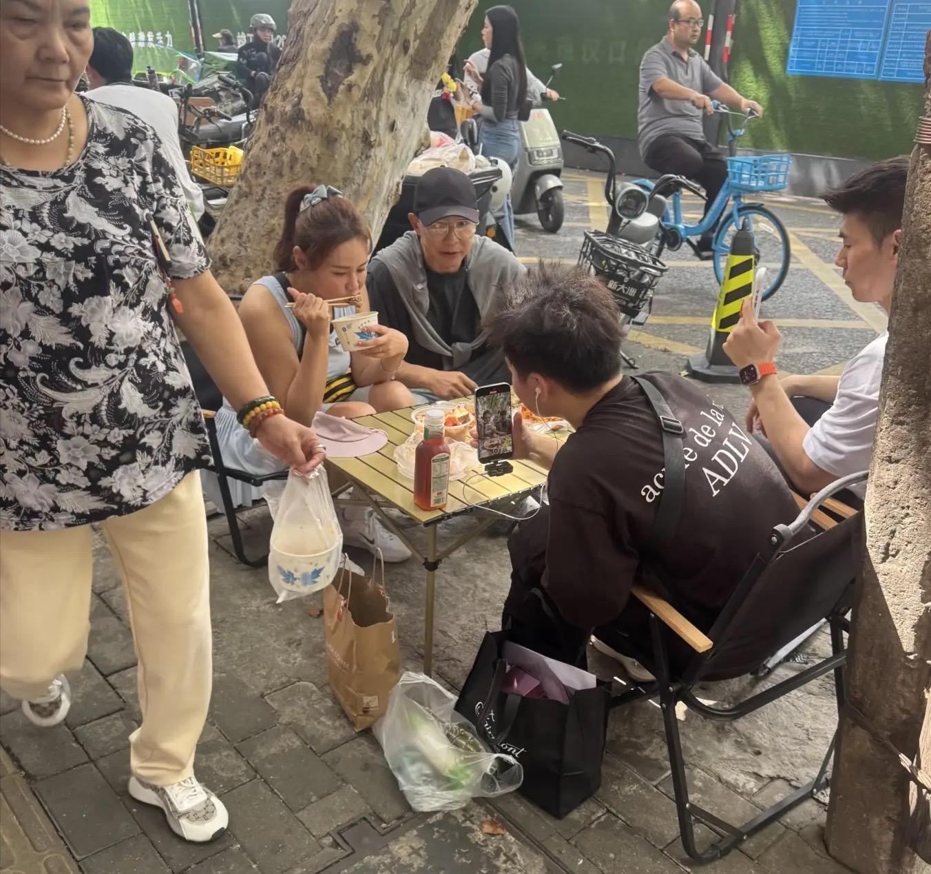 當天劉畊宏帶着幾個工作人員,坐在路邊小攤上喫麻辣燙,周圍來來往往的行人不斷。有眼尖的羊油,認出了貼着小鬍子的劉畊宏。