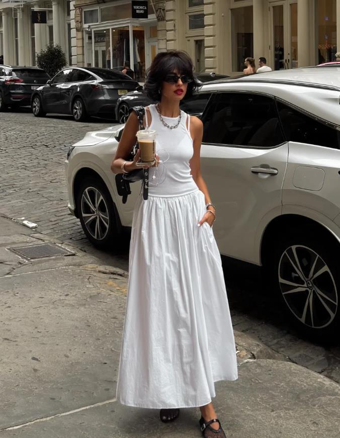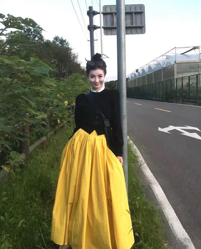 今年流行的“三七”穿法,姐妹們真的可以試試看,從配色上來劃分,上衣選擇黑色短針織開衫,利落有型,下身搭配明亮的黃色大裙襬長裙,行走間輕盈飄逸,色彩碰撞很強烈,上短下長的組合,很好優化整個身材比例,也輕鬆顯高挑。