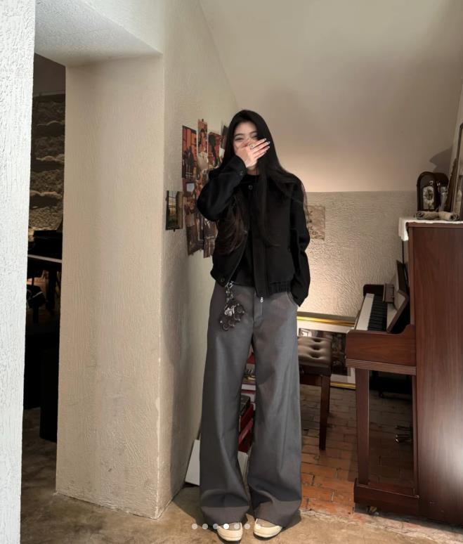 上短下長的搭配,不正是今年流行的“三七”穿法嗎,簡約又不失個性,黑色+灰色,短款的黑色針織衫,穿起來很顯利落,下身搭配深灰色闊腿褲,寬鬆的版型,加上垂墜感極佳的面料,顯得很隨性灑脫,選擇一雙淺色鞋子來配,整個色調沉穩又時尚,另外,加上一些小配飾來點綴,就細節感十足了。