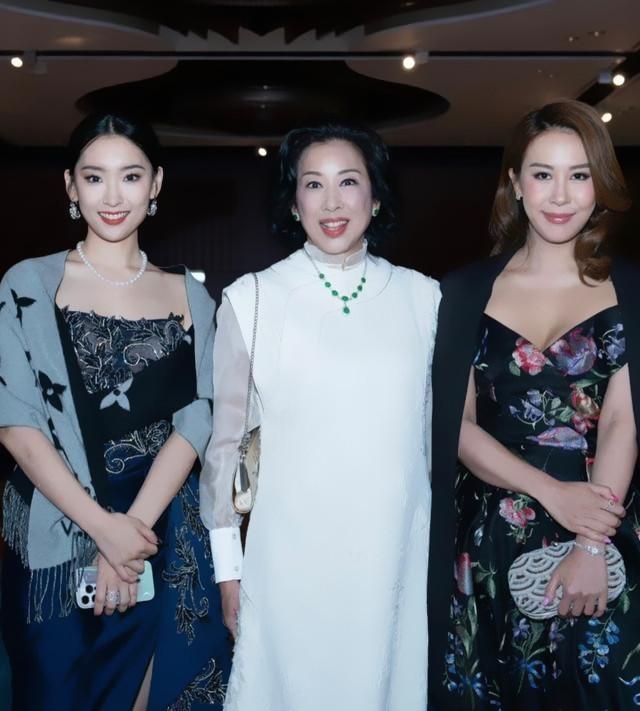 2025 年上海那場攝影展,是她後半生的最好註腳。45 幅花花草草的作品掛在牆上,她站在中間,黑色連衣裙的領口繡着細細的銀線,不張揚卻足夠精緻。港姐丁子田夫婦來捧場,蘇文夫婦圍在她身邊說笑,而羅康瑞就站在她身後,白髮梳理得整齊,中式外套的盤扣是她喜歡的紫檀木色。