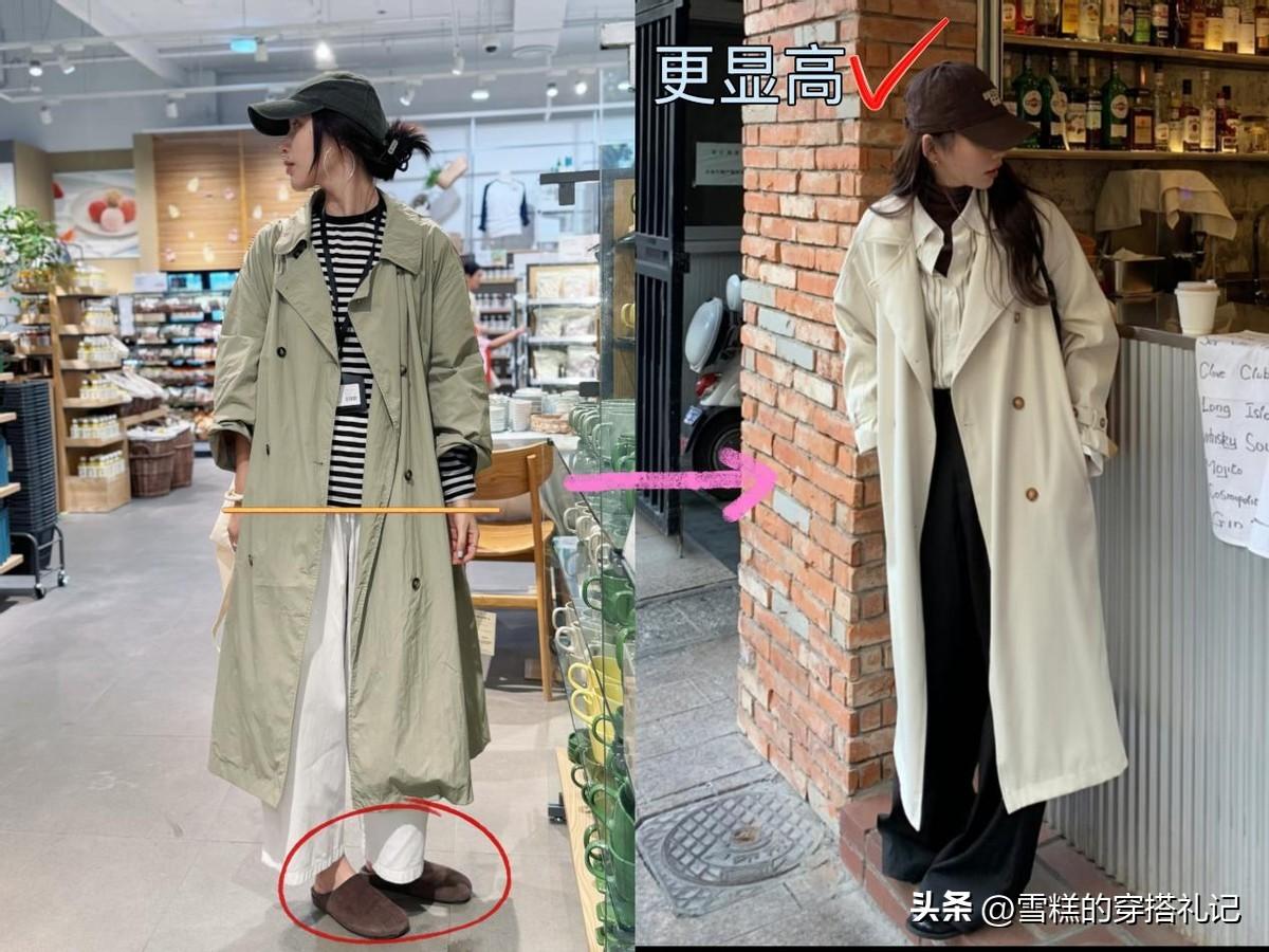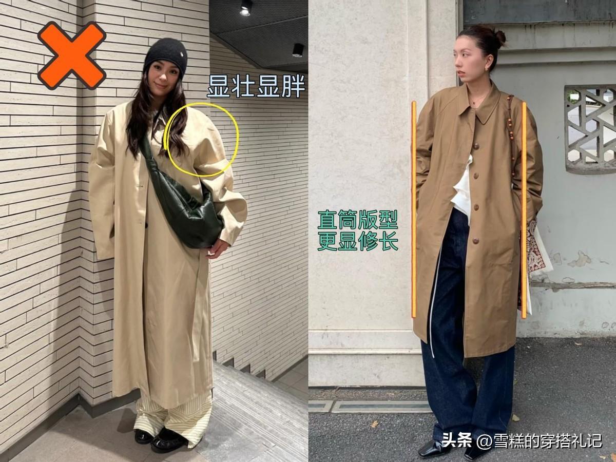 2.版型——合身最重要,避免過大過小:風衣版型需合身,肩線對齊肩頸,避免過大導致“撐不起來”,顯得拖沓;闊腿褲的寬度需適中,褲腳比褲腰寬3-5cm的微闊腿褲是最佳選擇,過於寬鬆的闊腿褲(褲腳比褲腰寬10cm以上)容易顯得笨重,尤其是小個子人羣,難以駕馭。