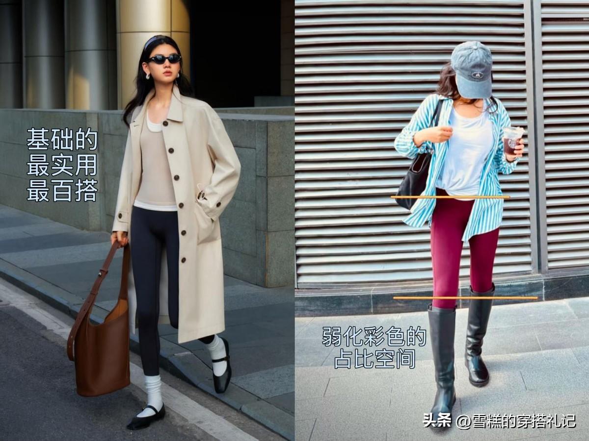 *要點提煉:打底褲的色彩選擇需與風衣形成和諧搭配,避免色彩衝突導致整體造型雜亂。