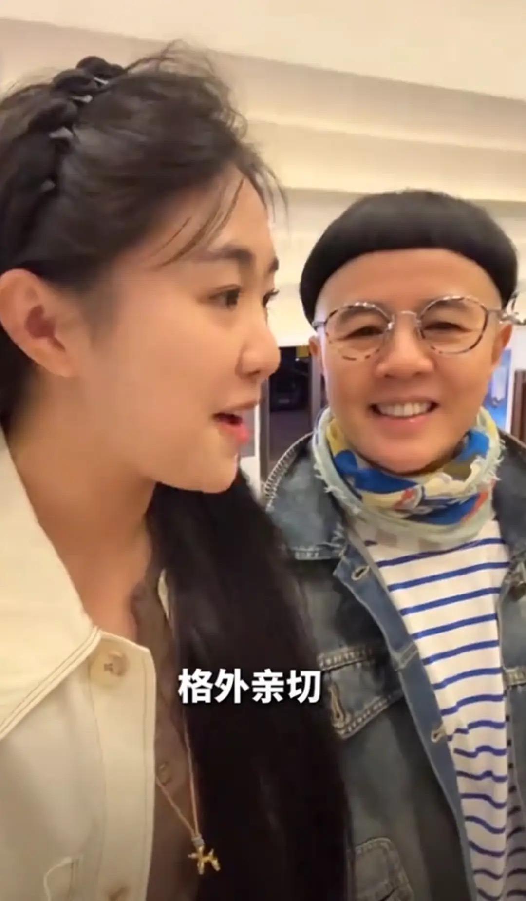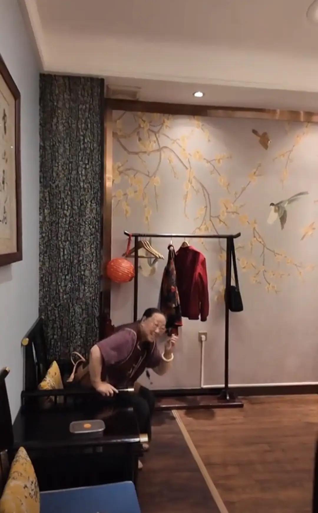 王寧媽媽年紀大了,走路有點步履蹣跚的樣子。不過老太太打扮的很洋氣,穿着新中式的套裝、戴着白玉鐲子,一看就很貴氣。