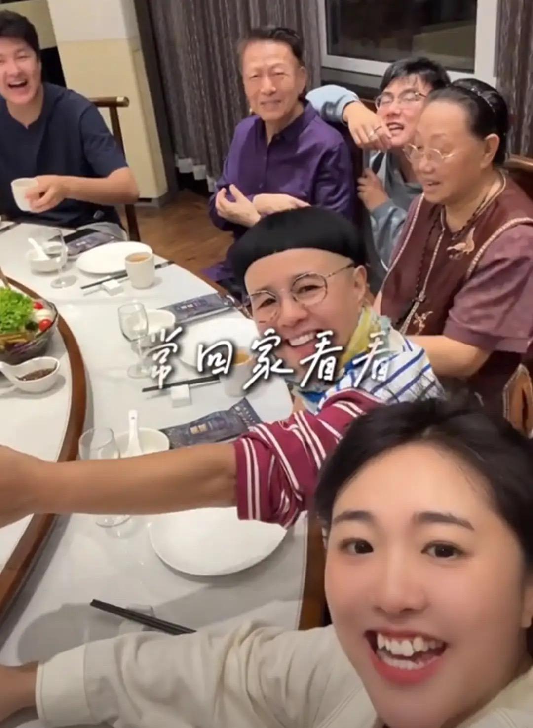 一家人圍着大圓桌喫飯,也太開心了吧。金龜子的婆婆和她挨着坐,看得出來婆媳關係非常好。一家人對着鏡頭大笑,這就是幸福瞬間的定格。