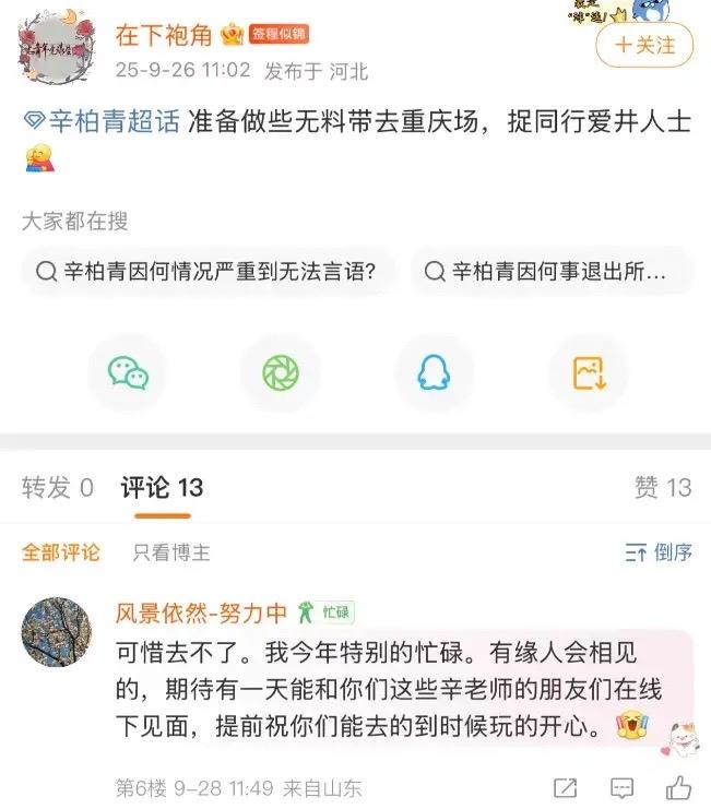 雖然話劇的時間定在10月下旬,可現在已經有很多網友開始搶票了。大家都希望看到一個全新的辛柏青,希望他振作起來、好好地經營自己的人生。