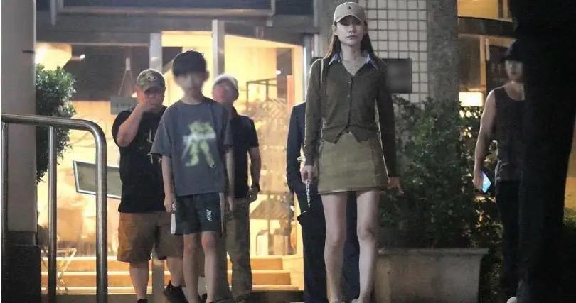 被拍的到時候,是一行人在火鍋店裏出來。應該是酒足飯飽之後的狀態,馬筱梅走在最前面,她穿着修身的短款polo衫,高腰的超短裙,身材輕盈很苗條。