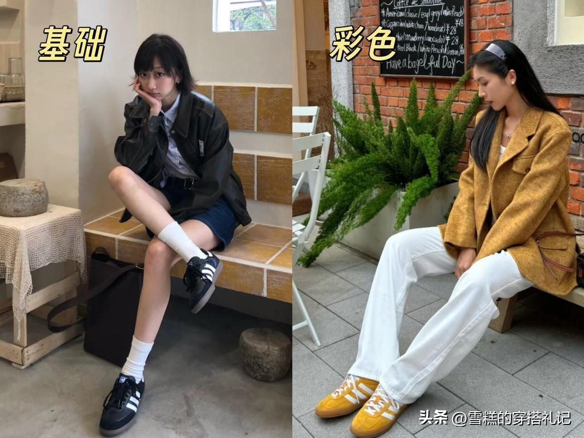 與小白鞋相比,德訓鞋的復古感更突出,搭配範圍卻同樣廣泛。無論是搭配牛仔褲、休閒褲,還是半身裙、連衣裙,都能輕鬆融入。它比一般板鞋更有設計的層次感,但是又比一般運動鞋多了些時髦感。