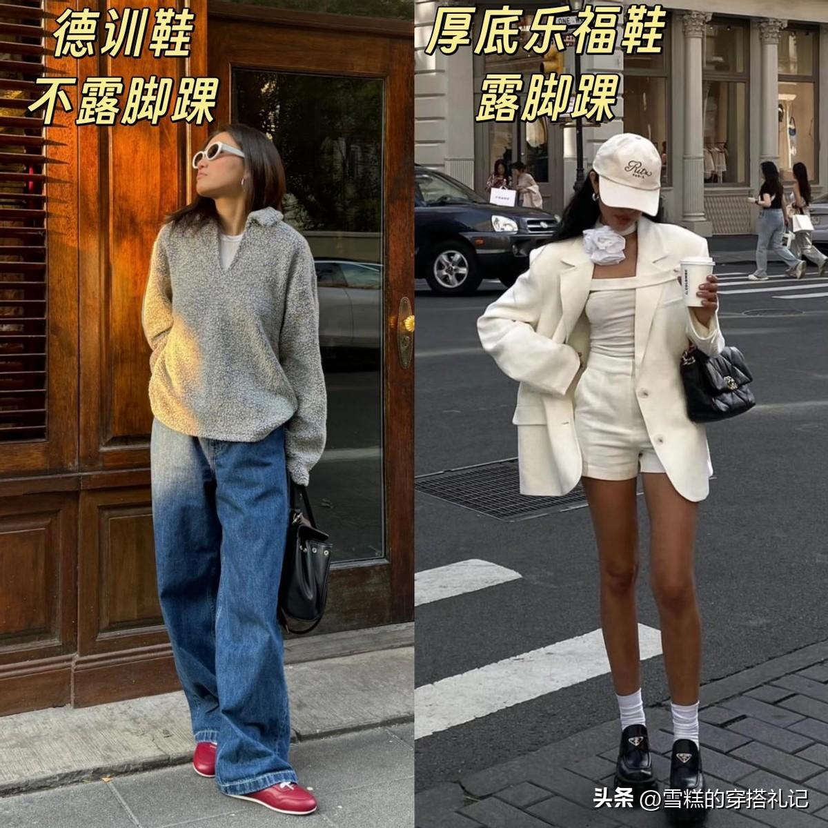 這三雙鞋分別是復古德訓鞋、方頭粗跟鞋和厚底樂福鞋,從休閒出街到職場通勤,從裙裝搭配到褲裝組合,都能展現出獨特的時尚張力,難怪能“擠走”小白鞋,成爲今年的穿搭新主流。