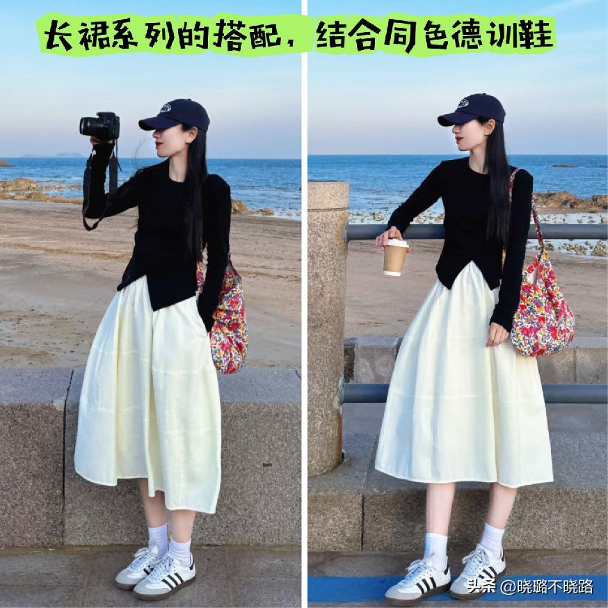 ❶ 且長款裙子可以與德訓鞋同色,拉伸!