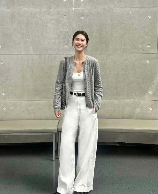 喜歡簡約大方一些穿搭的姐妹們就可以衝啦,這一套看起來就非常高級,高級灰的寬鬆針織衫,可以穿得很慵懶隨性,選擇白色闊腿褲來配,這樣的褲子垂墜感十足,不僅能把腿部線條拉得很修長,還能藏起腿部的肉肉,與棕色包包、鞋子相配,既和諧又不失時尚。