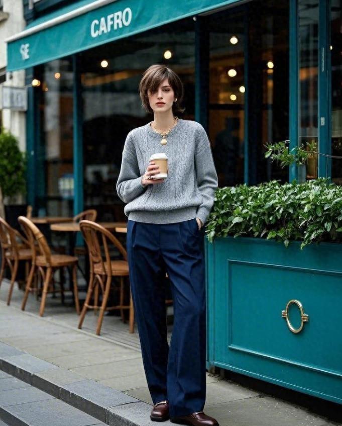 今秋最流行的針織衫,配闊腿褲美得剛剛好!