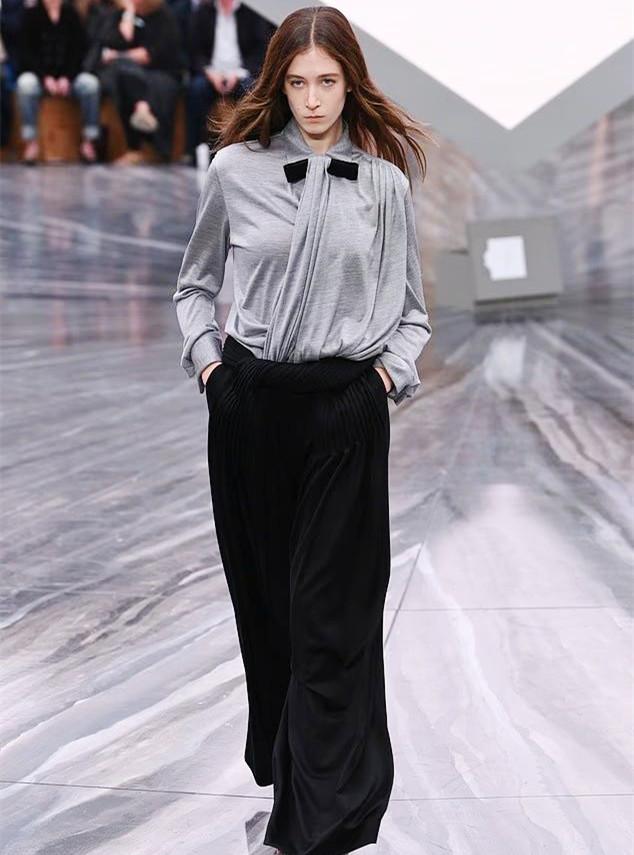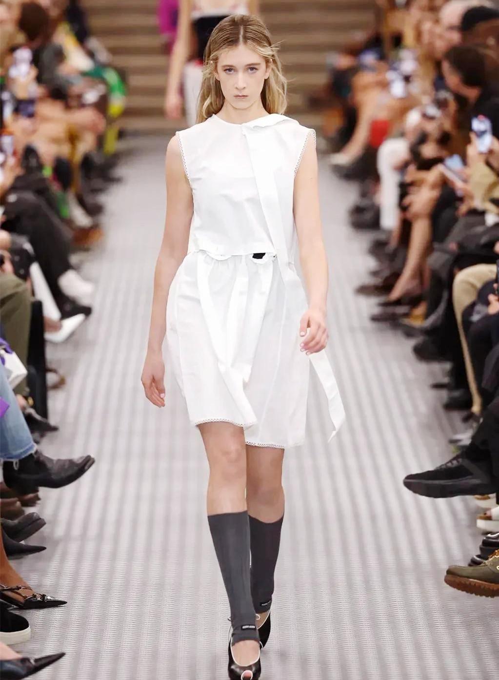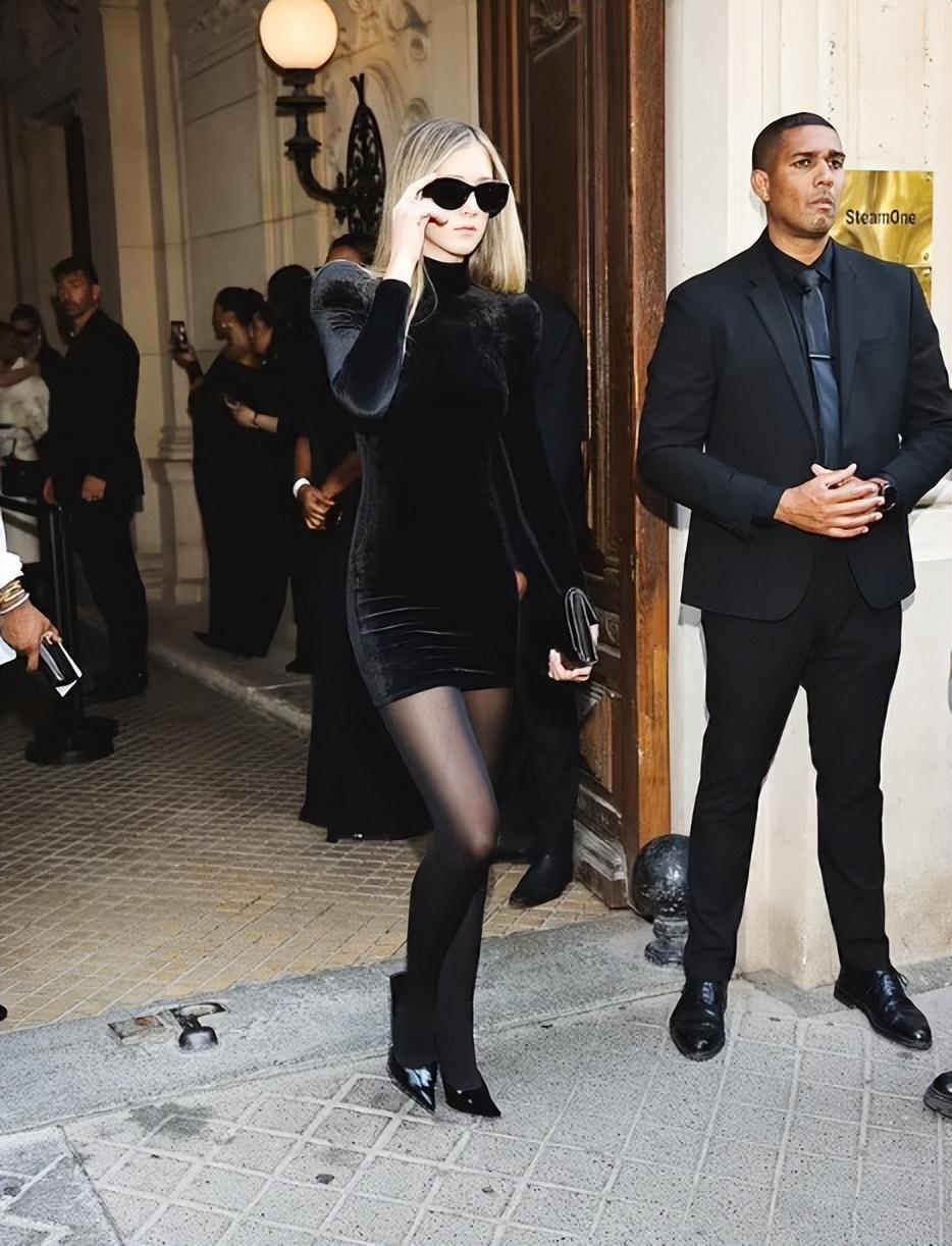 從她兩次巴黎時裝週的亮相中可見一斑。去年爲 Miu Miu 開場時,她身着黑色短款上衣搭配高腰百褶裙,簡約的剪裁勾勒出纖細腰線,臉上未施粉黛,眼神堅定地走在 T 臺上,冷感十足;私下裏,桑迪的穿搭也延續了這一風格:。