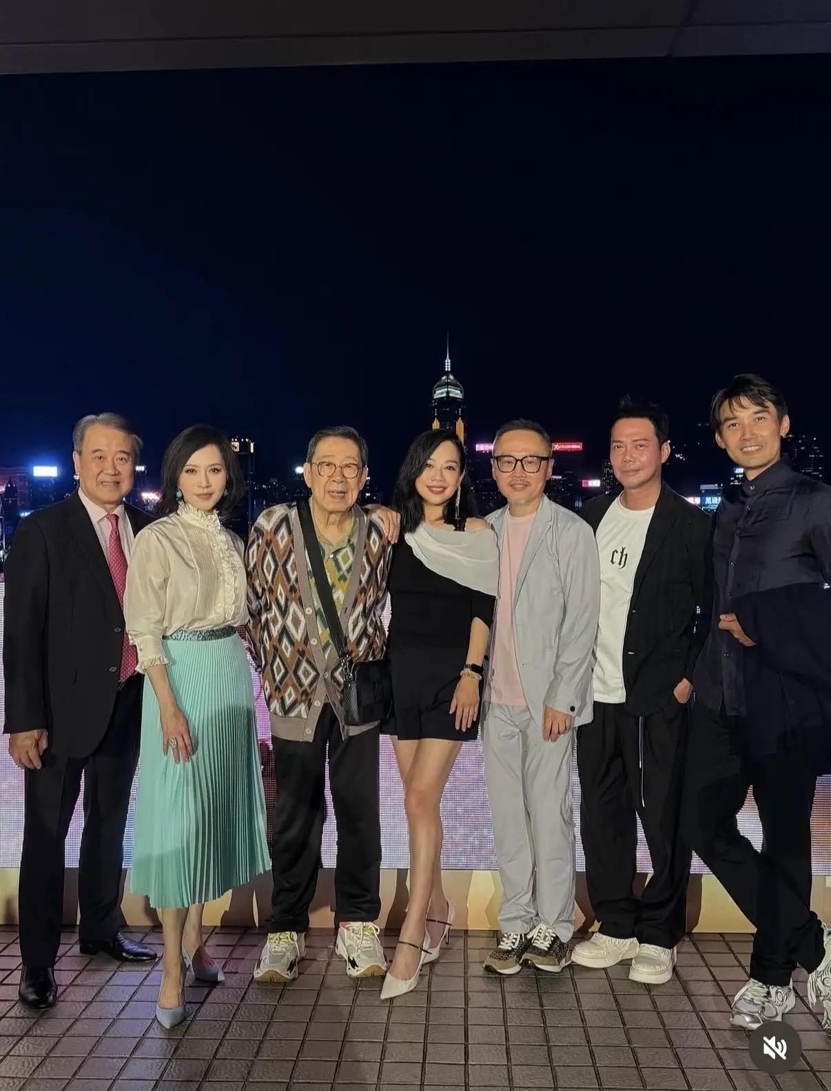 顧紀筠穿小香風外套、水藍色百褶裙,看起來特別年輕。她還和93歲的胡楓合影了,胡楓人稱“修哥”,原名胡繼修、曾與梅豔芳搭檔主演《男人心》。