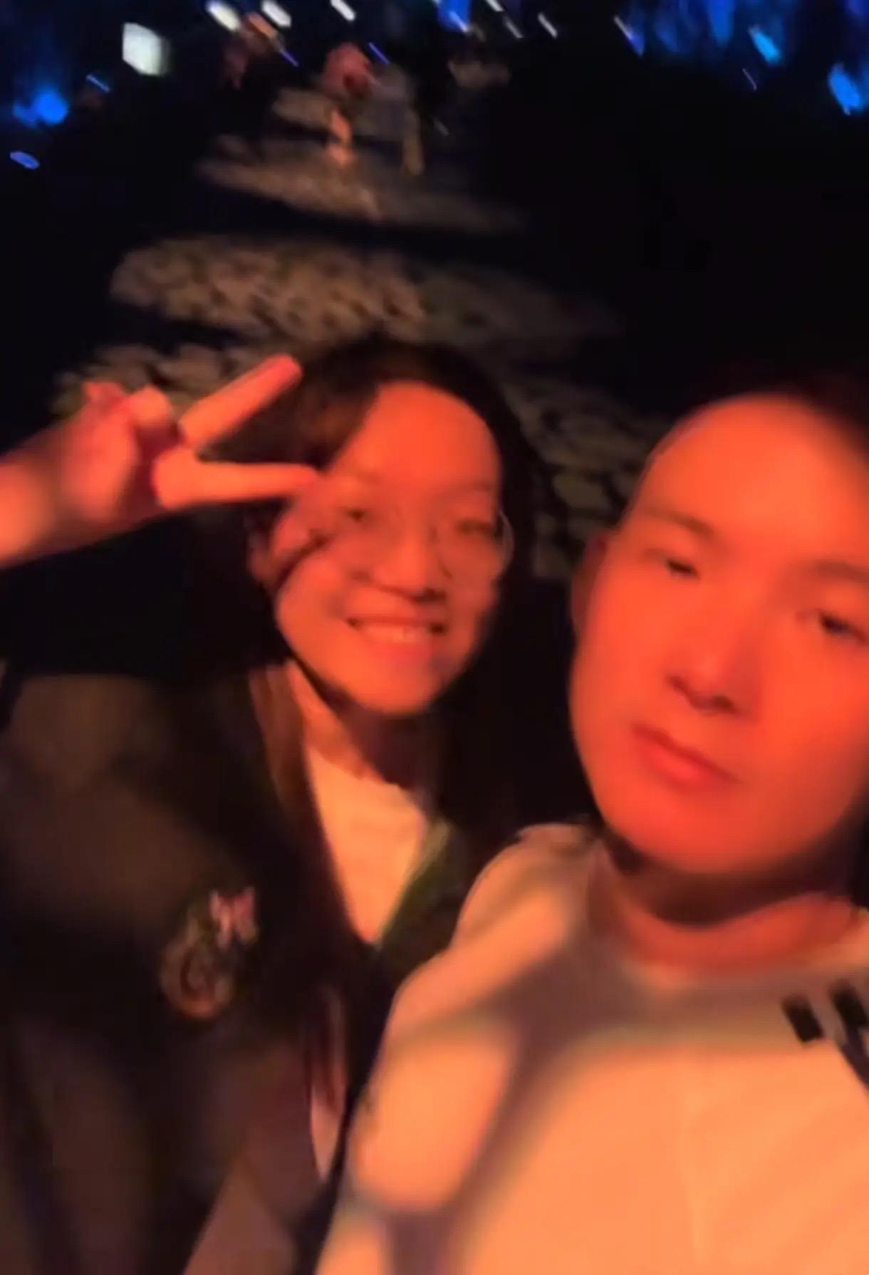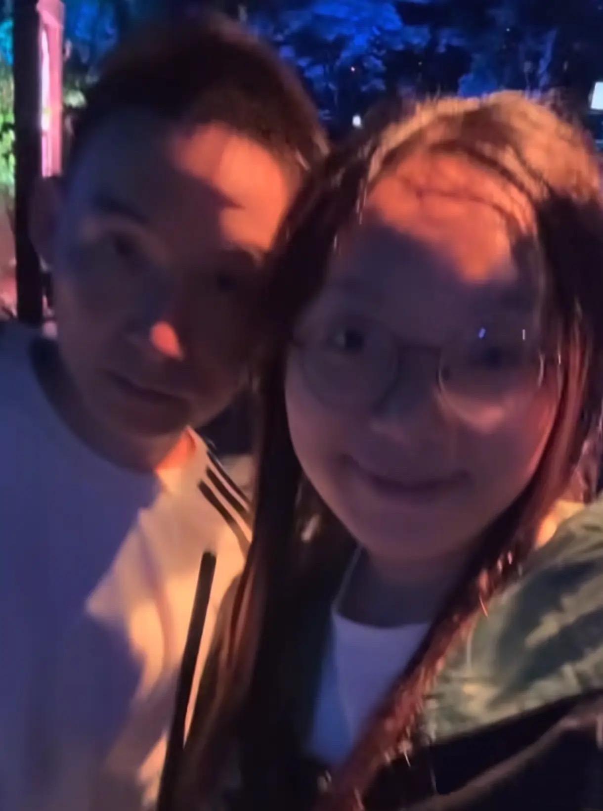 整個畫面,就只有謝浩男和大妹露臉了,全程謝浩男都在抿着嘴巴,沒什麼表情,只有大妹擠出了笑容,還對着鏡頭比耶。