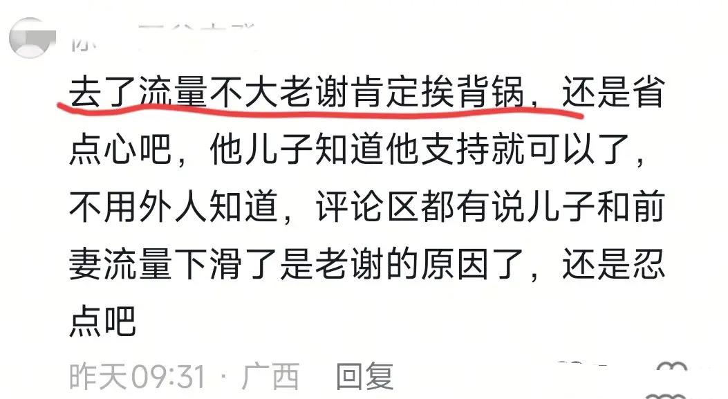 雖然流量下滑不是老謝的原因,但也有人會強行把原因按在老謝頭上,老謝在這時候還是要忍一忍。