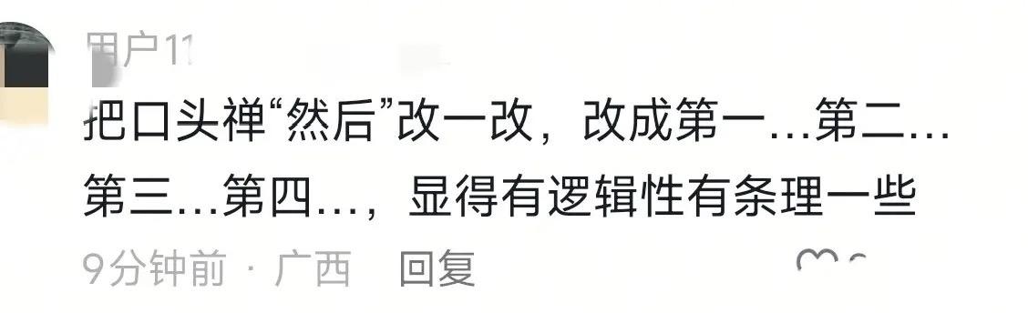 也有網友提供了一個更有效的方式,就是把口頭禪“然後”改成第一、第二、第三,這樣就會顯得更有邏輯性、也更有條理性了。