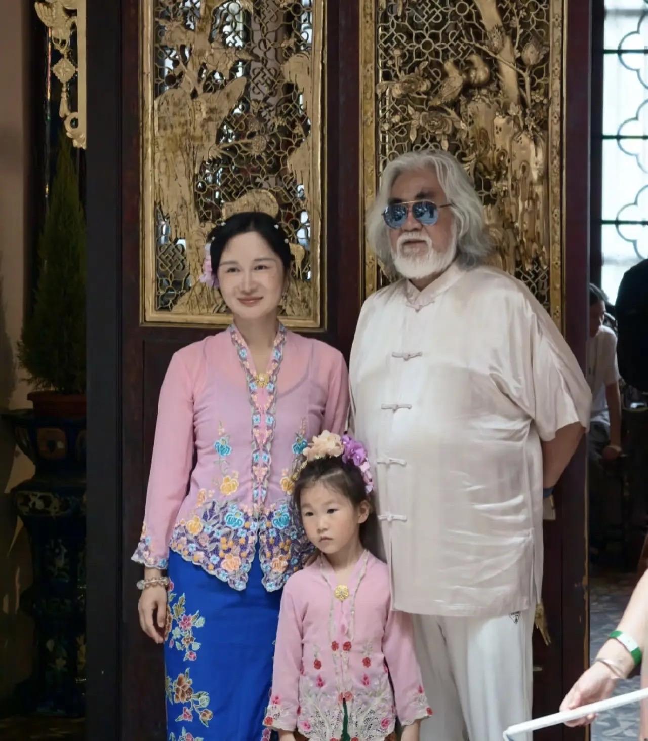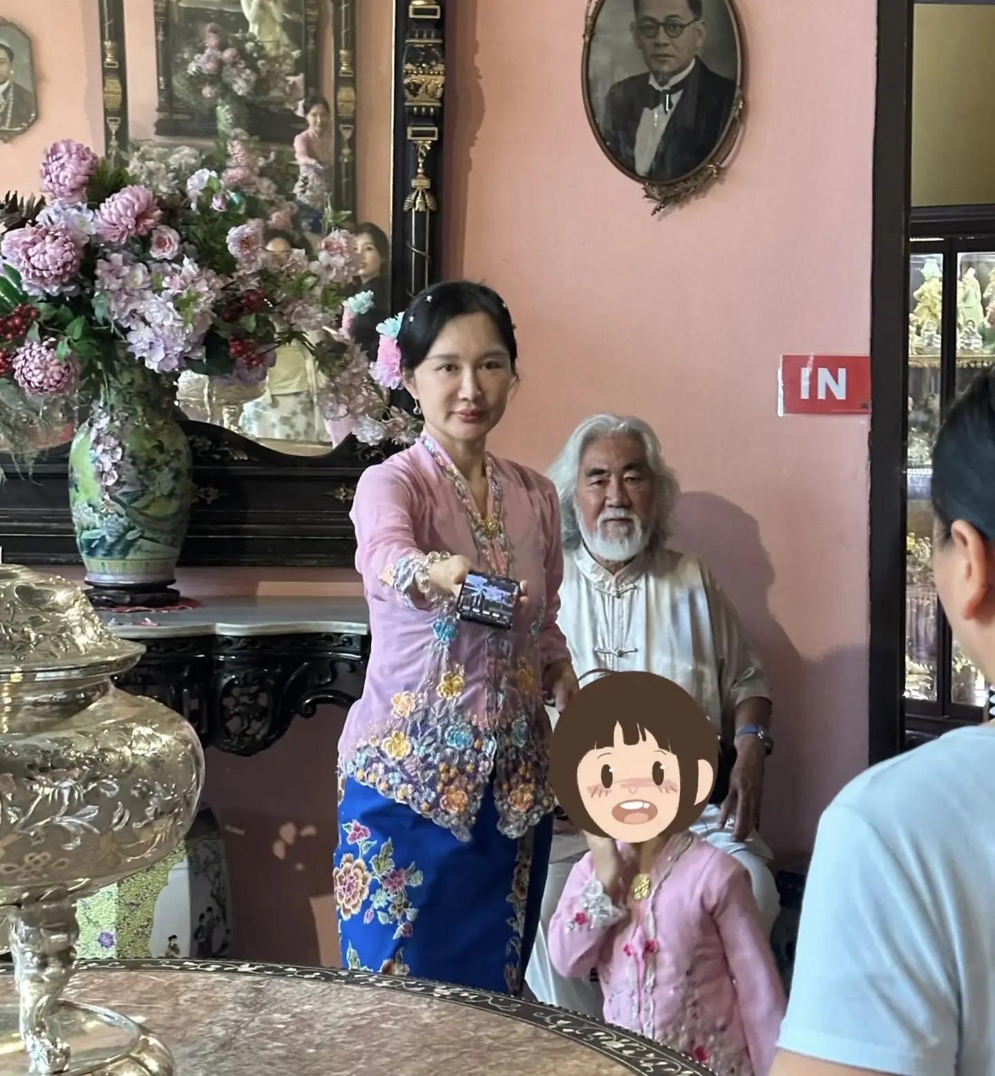 這次張紀中夫婦帶女兒參觀娘惹博物館,一家人都是精心打扮過的。尤其是女兒穿着和媽媽同款的衣服,看着很養眼。