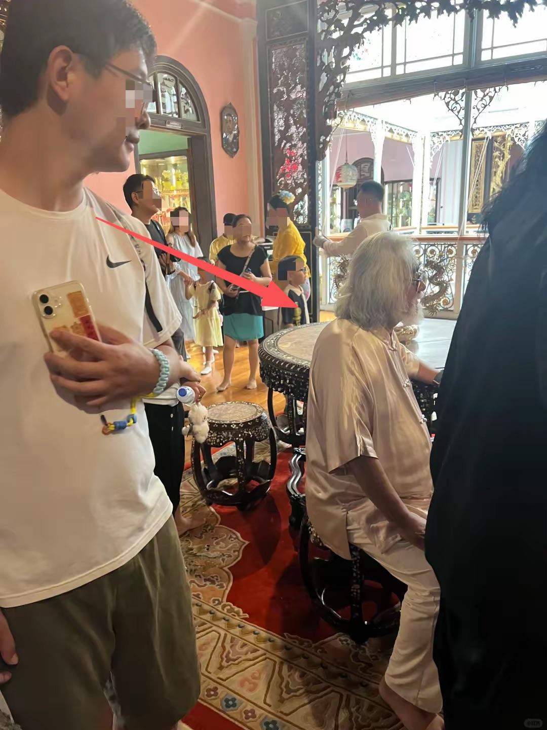 他們一家還去參觀了娘惹博物館,十一假期的時候這裏有很多遊客,張紀中逛累了有點體力不支,一個人坐下來休息。